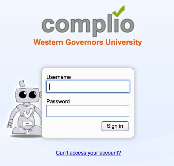 Access the WGU Complio URL: http://wgucompliance.com/