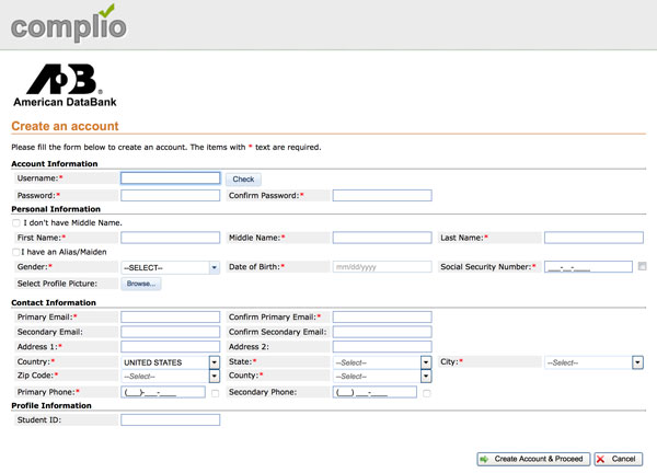 If you already have a Complio account, you’ll be presented with a Complio Login screen. Here, you’ll enter your Complio Username and Password (Both you selected when you initial set up your Complio account)
